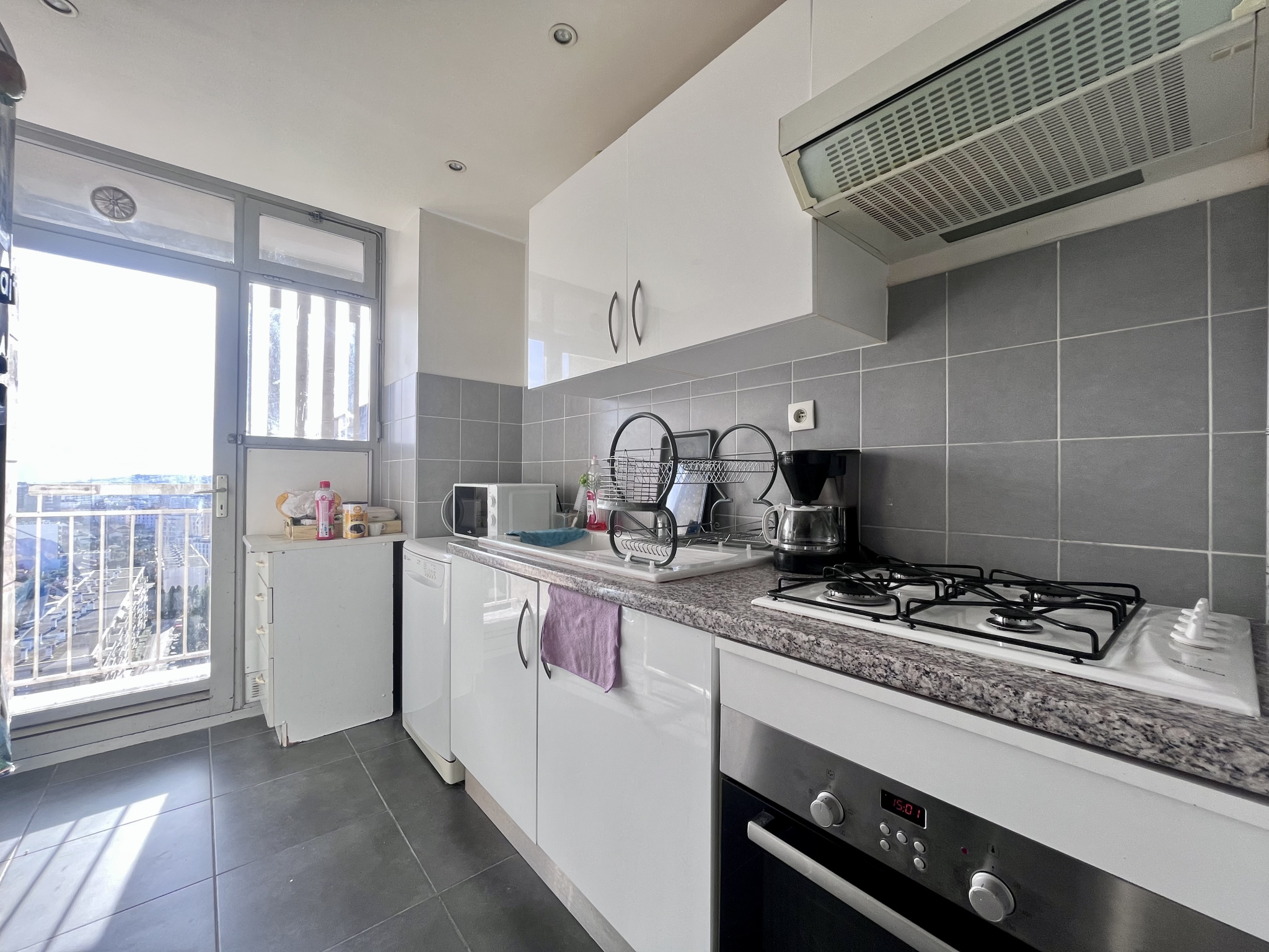 Ce T3 comporte deux chambres (10 et 9m2), un salon de 18m2 plein sud avec son balcon de 2m2 coté séjour qui donne sur une magnifique vue, un autre balcon coté cuisine, une cuisine équipée, une salle de bain et WC à part. Le bien se trouve au 8eme étage d'un immeuble avec ascenseur.